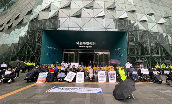 서울시장애인자립생활센터협의회(이하 서자협)와 서울시장애인자립생활센터총연합회(이하 서자연)는 25일 오전 11시 서울시청 앞에서 ‘장애인동료상담가 무시하는 집행기준 철회’ 기자회견을 개최했다.