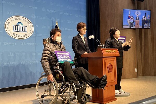 정의당 강은미 의원은 이날 오전 10시 40분 국회 소통관 기자회견장에서 전국장애인차별철폐연대와 함께 ‘최저임금법 개정안’ 대표발의 기자회견을 개최했다.