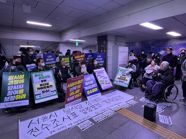 앞서 전장연과 서울시는 탈시설장애인 1000명 대상 전수조사 계획을 두고, 갈등을 빚어왔다.