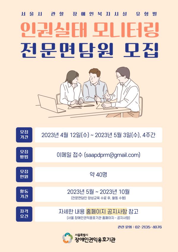 ’서울시 장애인복지시설 유형별 인권실태 모니터링‘ 전문 면담원 모집