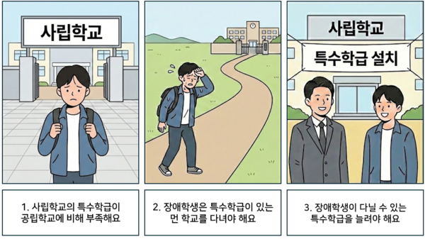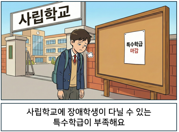 사립학교에 장애학생이 다닐 수 있는 특수학급이 부족해요