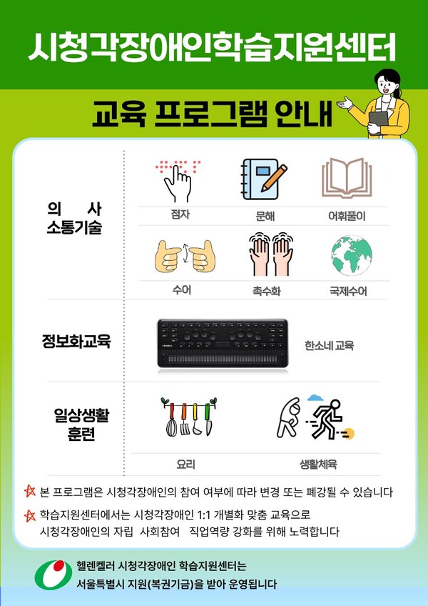 헬렌켈러 시청각장애인 학습지원센터, '2026년 1학기 교육생' 모집