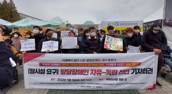 특히 발달장애인이 지역사회에서 자유롭고 안전하게 자립생활을 하기 위해 국회에 탈시설과 자립 지원을 촉구하는 목소리도 이어졌다.