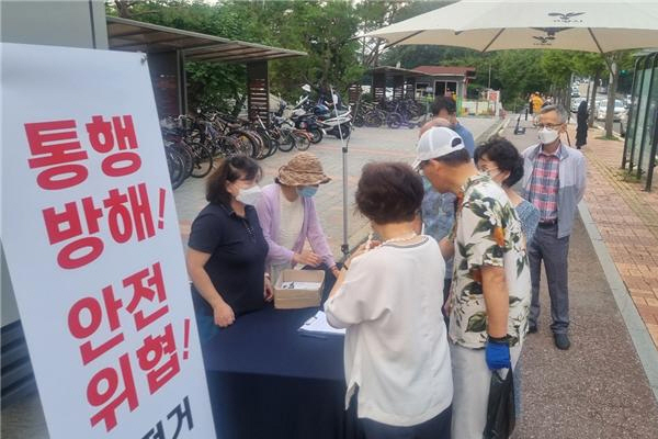 자전거보관소는 1억6천만 원이 투입되는 공사로 자전거보관소가 들어선 자리는 애초 화단을 따라 자전거 30대 거치대가 있었으나, 이를 철거하고 대신 50대를 수용하는 대형 구조물(1층 25대·2층 25대)을 설치할 계획이다. 대책위는 29일부터 2단계 주민서명을 이어가고 있다.