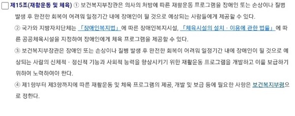 장애인건강권법 15조 가장 큰 문제 ‘재활운동 및 체육’ 용어의 혼란