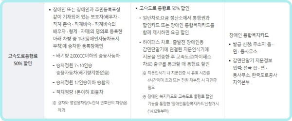장애인 6인승 차량, 도로교통비 할인