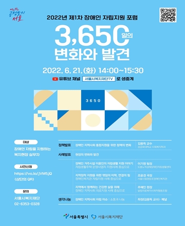 서울시복지재단이 오는 21일 오후 2시 유튜브 채널 ‘서울시복지재단TV’를 통해 ‘제1차 장애인 자립지원 포럼’을 개최한다.