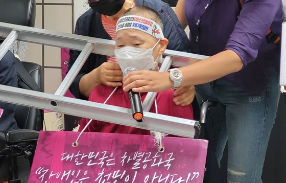 이어 “OECD 경제 11위라는 국가의 현실이 왜 이리 비참한가. 그 많은 돈이 다 어디에 쓰이고 있는가. 누가 선택하고 있는 것인가”라며 “이 경제대국에서 장애인이 지역사회에서 살아갈 수 있는 예산이 없다는 것은 기만이고 무책임한 처사”라고 소리 높였다.