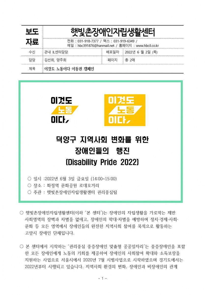 덕양구 지역사회 변화를 위한 장애인들의 행진 [Disability Pride 2022] 7차