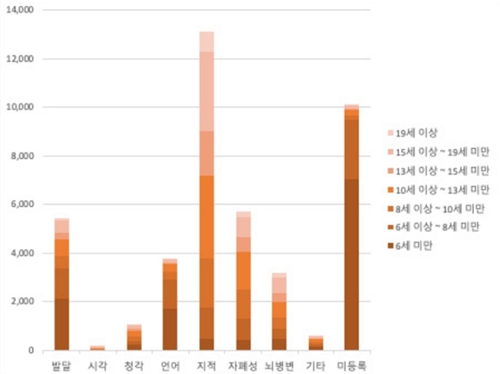 연령별 발달재활서비스 이용자 장애유형. ⓒ에이블뉴스 에이블포토로 보기▲ 연령별 발달재활서비스 이용자 장애유형. ⓒ에이블뉴스