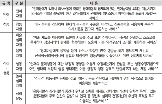 발달재활서비스 유형별 구분 및 내용. ⓒ에이블뉴스 에이블포토로 보기▲ 발달재활서비스 유형별 구분 및 내용. ⓒ에이블뉴스