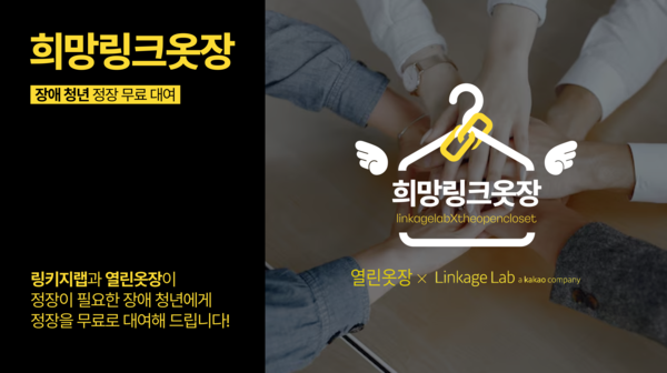 카카오의 자회사형 장애인 표준사업장 ㈜링키지랩이 사단법인 열린옷장과 협력해 장애인의 사회 진출과 새로운 출발을 응원하는 정장 무료 대여 지원사업 ‘링키지랩과 함께 하는 희망링크옷장’을 본격적으로 운영한다고 2일 밝혔다.