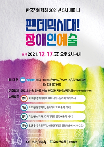 2021년 5차 세미나 ‘팬데믹시대! 장애인예술’ 포스터. ⓒ한국장애학회