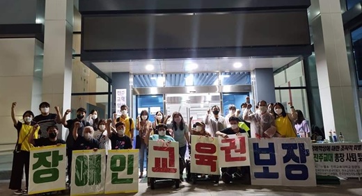 사건이 알려지자 장애계도 즉각 “악의적 장애인 차별”이라고 반발했습니다. 햇빛이 쏟아졌던 4월 청와대 분수대 앞 첫 기자회견을 시작으로, 교육부, 그리고 무더운 여름 진주교대에서의 11일간의 노숙농성과 1인 시위까지. 참으로 질긴 투쟁이었습니다.