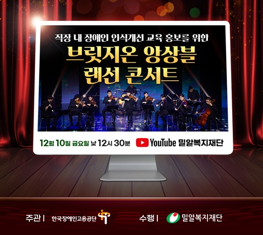 이번 콘서트는 올 한 해 브릿지온 앙상블에게 성원을 보내준 후원자들에게 감사를 전하고자 마련됐다. 콘서트는 낮 12시 30분부터 40분 동안 밀알복지재단 공식 유튜브 채널에서 진행된다. 누구나 무료로 관람할 수 있다.