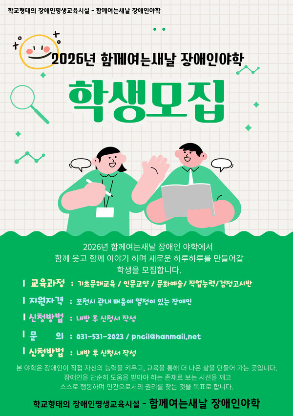 함께여는 새날 장애인야학, 2026년도 포천 관내 장애인 학생 모집