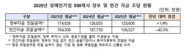 민간 자금 조달 현황 (자료 : 장애인기업종합지원센터)