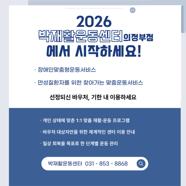 전성환 기자 : 의정부시는 장애인의 건강 증진과 사회 참여 확대를 위한 ‘2026년 상반기 장애인 맞춤형 운동서비스(지역사회서비스투자사업)’ 바우처 대상자 선정 결과를 발표했다.
