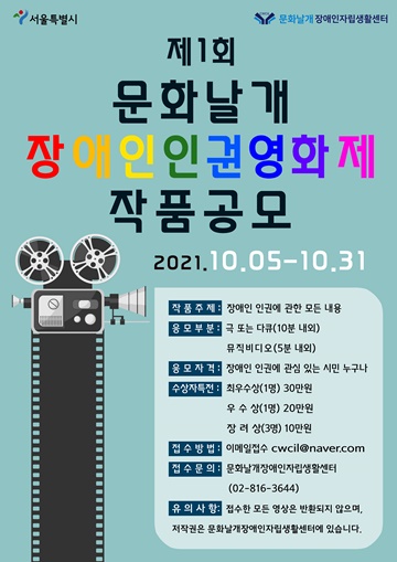 문화날개장애인자립생활센터가 오는 31일까지 ‘제1회 문화날개 장애인인권영화제’ 출품작을 공모한다.