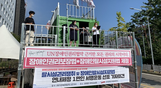 서명운동은 이날부터 10월말까지 한달간 온라인(https://bit.ly/탈시설제정촉구서명운동)과 오프라인으로 병행해 진행된다.완료된 1만 명의 서명은 추후 국회로 전달될 예정이다.