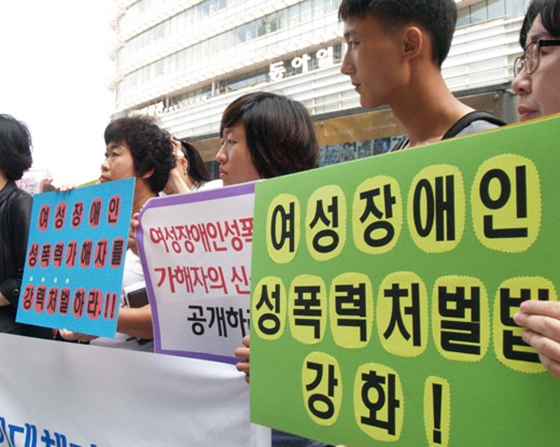 '지적장애인 성폭력 사건의 수사·판결 및 성폭력 예방과 피해자 보호의 근본 대책 마련을 촉구하는 모습.ⓒ에이블뉴스DB 에이블포토로 보기▲ '지적장애인 성폭력 사건의 수사·판결 및 성폭력 예방과 피해자 보호의 근본 대책 마련을 촉구하는 모습.ⓒ에이블뉴스DB