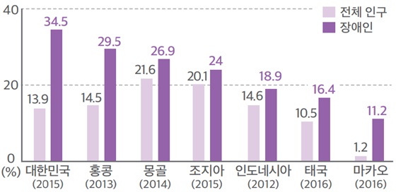 대한민국 장애인 빈곤율 전체 인구 대비 약 2.5배