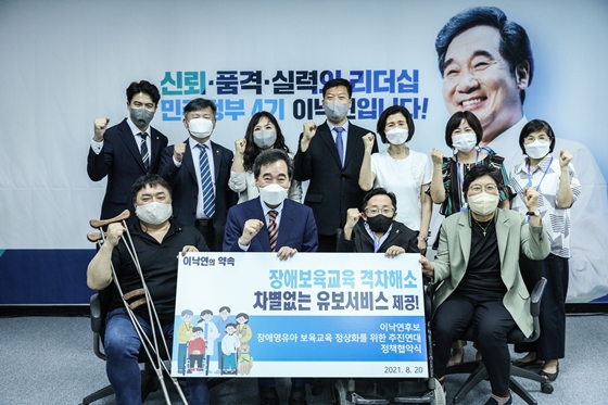 이낙연 더불어민주당 대선 경선 예비후보가 장애영유아에 대한 보육 및 교육에 대한 차별 해소와 의무교육 보장을 위해 적극 나서겠다고 약속했다.