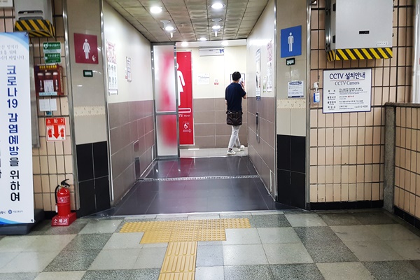 신용산역 남녀비장애인화장실 입구 점자블록 이래서야