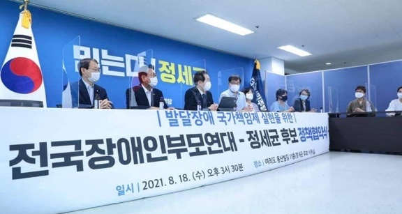 정 후보는 대통령선거 경선 후보로서 발달장애인 당사자와 그 가족에 대한 지원을 확대하고 권리를 보장하기 위한 정책들을 약속했다.
