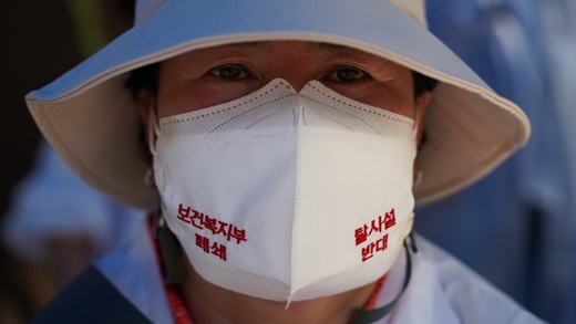 전국장애인거주시설부모회가 지난 10일 세종시에 위치한 보건복지부 청사 앞에서 집회를 갖고, 장애인 탈시설 정책을 규탄했다. 부모회 회원 마스크에 ‘탈시설 반대’가 쓰여있다.ⓒ전국장애인거주시설부모회 에이블포토로 보기▲ 전국장애인거주시설부모회가 지난 10일 세종시에 위치한 보건복지부 청사 앞에서 집회를 갖고, 장애인 탈시설 정책을 규탄했다. 부모회 회원 마스크에 ‘탈시설 반대’가 쓰여있다.ⓒ전국장애인거주시설부모회