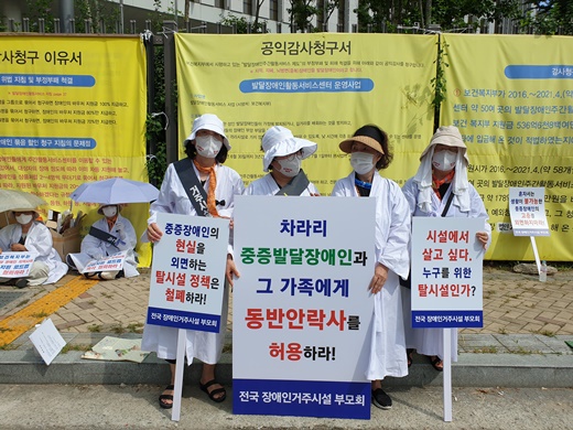 이에 이들은 “중증장애인과 그 가족을 죽음으로 내모는 야만적인 탈시설 정책을 즉각 중지하고, 중증발달장애인이 시설에서 거주할 권리를 보장해달라”면서 “장애인과 부모의 의견을 반영하지 않은 ‘탈시설 장애인 지역사회 자립지원 로드맵’을 즉각 철회해야 할 것”이라고 피력했다.