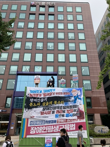 장애계 장애인정책조정위 겨냥 옥상투쟁 돌입