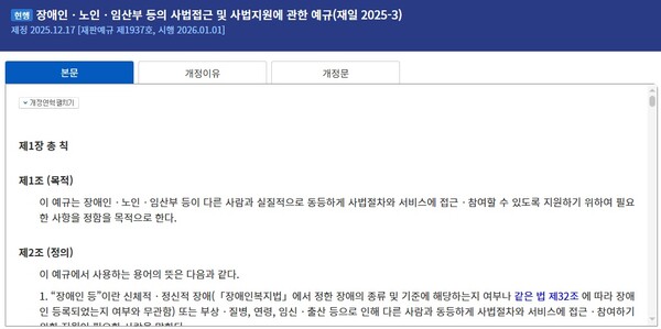 ‘장애인·노인·임산부 등의 사법접근 및 사법지원에 관한 예규’. ©사법정보공개포털