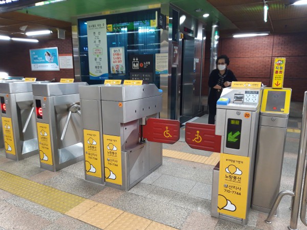 지하철에 장애인이 다닐 수 있는 와이드게이트가 자동문이므로 지체장애인이나 뇌병변장애인 그리고 전동휠체어나 전동스쿠터가 지나다니기에는 별문제가 없는 것 같다.
