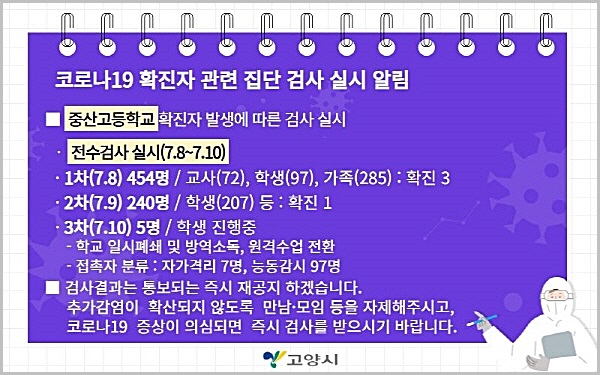 고양시, 확진자 30명 발생 '일산동구 고교 관련 추가 확진에 누적 6명'