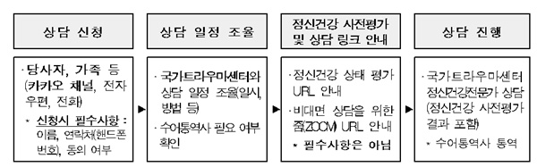 상담은 평일 오전 9시에서 오후 5시까지 가능하며(점심시간 정오~오후 1시 제외), 줌(ZOOM)을 활용한 온라인 영상으로 진행하거나, 직접 국가트라우마센터를 방문해 상담하는 것도 가능하다. 단, 방문상담 시 수어통역사 일정조율 등을 위해 사전 신청이 필수다.