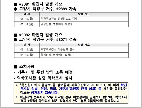 고양시, 확진자 9명(3074~3082번) 발생 '8명은 가족·지인 등 접촉 감염'