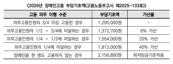 장애인고용부담금 부담기초액.ⓒ한국장애인고용공단