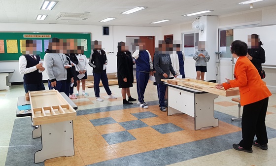 중학교에서의 통합스포츠 슐런교실 수업 모습. ⓒ김최환 에이블포토로 보기▲ 중학교에서의 통합스포츠 슐런교실 수업 모습. ⓒ김최환