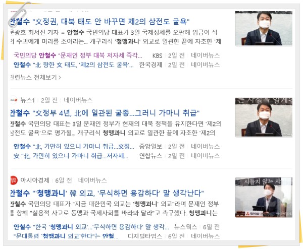 안철수 국민의당 대표는 지난 4월 29일 국회에서 열린 최고위원회의 모두 발언을 통해 한·미 정상회담을 앞둔 문재인 대통령의 행보를 두고 "지금 대한민국의 외교는 '청맹(靑盲)과니 외교'이다. 이것은 두고두고 엄청난 국익의 손실을 가져올 수밖에 없다"며 "감성과 이념, 시대에 뒤떨어진 편향된 사고에서 벗어나라"고 촉구했다.