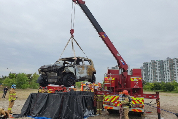 고양시 일산소방서, 전국 최초 전기자동차 실물화재 실험 진행