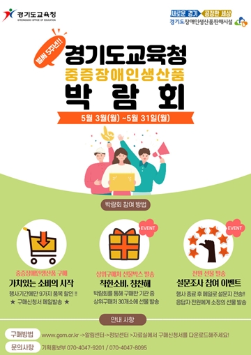 경기도교육청(교육감 이재정)과 경기도장애인생산품판매시설(이하 경기판매시설)이 오는 5월 3일부터 5월 31일까지 ‘2021년도 경기도교육청 중증장애인생산품 박람회’를 비대면으로 진행한다.