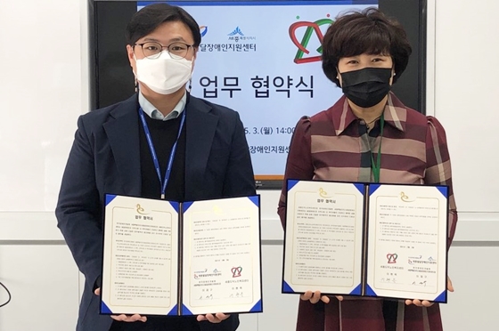 한국장애인개발원 세종특별자치시발달장애인지원센터(센터장 이재구, 이하 세종발달센터)가 3일 세종도덕노인복지센터(센터장 이현옥, 이하 노인센터)와 발달장애인과 가족, 지역사회 내 취약계층의 권익보호 및 서비스 제공을 위한 업무협약을 체결했다.