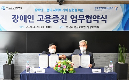 한국장애인고용공단(이사장 조향현, 이하 공단)과 한국저작권보호원(원장 박주환, 이하 보호원)은 28일 오후 2시 보호원 회의실에서 장애인고용 증진을 위한 업무협약을 체결했다.