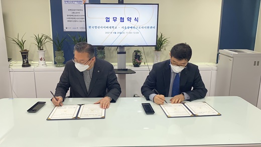 서울장애인근로자지원센터(센터장 황보익, 이하 센터)가 28일 오전 11시 한국열린사이버대학교(총장 장일홍, 이하 열린사이버대)와 업무협약을 체결했다.