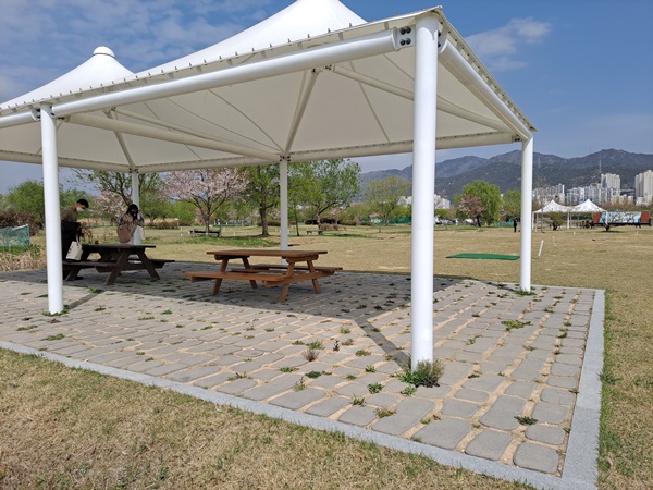그런데 파고라가 두 개 설치되어 있었는데 바닥이 자연석이다. 울퉁불퉁한 자연석이라면 보기에는 어떨지 몰라도 장애인이 이용하기에는 여러모로 불편하고 자칫 잘못하면 다칠 수도 있다. 자연석이라면 평평한 보도블록보다 더 비쌀 텐데 왜 굳이 자연석을 고집한 것일까.