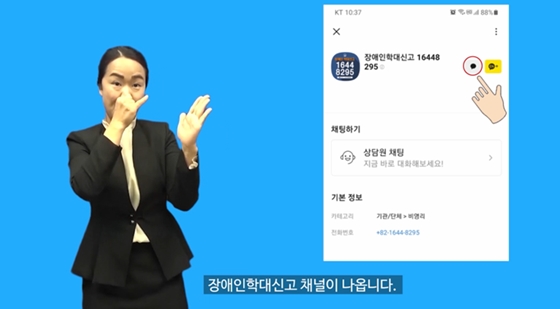 특히 신고하는 방법은 영상을 보고 청각·언어장애인이 따라 할 수 있도록 카카오톡 검색을 통해 상담원과 연결되는 과정, 문자로 신고해 신고자가 위치한 관할 지역의 상담원과 연결되는 전 과정을 이미지와 함께 수어로 설명했다.