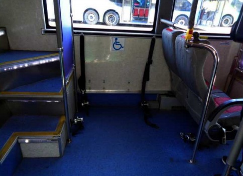 이 사건 버스의 교통약자용 좌석 설치 공간. 법 기준에 미달돼 휠체어 사용 장애인이 운행 내내 측면만 바라본 채 이동해야 했다.ⓒ대법원 에이블포토로 보기▲ 이 사건 버스의 교통약자용 좌석 설치 공간. 법 기준에 미달돼 휠체어 사용 장애인이 운행 내내 측면만 바라본 채 이동해야 했다.ⓒ대법원