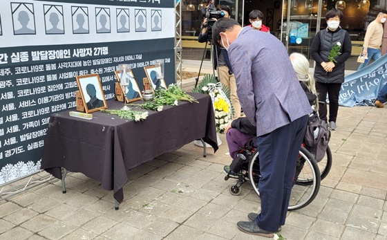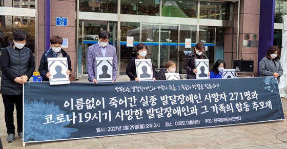 전국장애인부모연대가 29일 오후 2시 여의도 이룸센터에서 ‘이름없이 죽어간 실종 발달장애인 사망자 271명과 코로나19시기 사망한 발달장애인과 그 가족의 합동 추모제’를 진행했다. ⓒ에이블뉴스 에이블포토로 보기▲ 전국장애인부모연대가 29일 오후 2시 여의도 이룸센터에서 ‘이름없이 죽어간 실종 발달장애인 사망자 271명과 코로나19시기 사망한 발달장애인과 그 가족의 합동 추모제’를 진행했다. ⓒ에이블뉴스