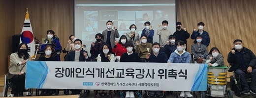 한국장애인식개선교육센터가 8일 이룸센터 누리홀에서 2021년 장애인식개선 교육강사 위촉식을 진행했다.ⓒ한국장애인식개선교육센터 에이블포토로 보기▲ 한국장애인식개선교육센터가 8일 이룸센터 누리홀에서 2021년 장애인식개선 교육강사 위촉식을 진행했다.ⓒ한국장애인식개선교육센터한국장애인식개선교육센터가 8일 이룸센터 누리홀에서 2021년 장애인식개선 교육강사 위촉식을 진행했다.